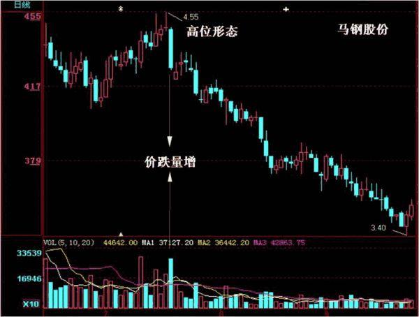8、量增价跌,弃卖观望:股价经过长期大幅下跌之后,出现成交量增加,即使股价仍在下落,也要慎重对待极度恐慌的“杀跌”,所以此阶段的操作原则是放弃卖出空仓观望。低价区的增量说明有资金接盘,说明后期有望形成底部或反弹的产生,适宜关注。有时若在趋势逆转跌势的初期出现“量增价跌”,那么更应果断地清仓出局。