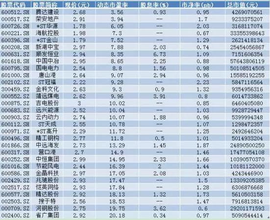 其中有大量的钢铁类股票都是二三元多。钢铁股的业绩还可以。比如河钢股份现在的股价是2.95元,动态市盈率不足7倍。凌钢股份2.98元,动态市盈率不足5倍。更为重要的是它们在市盈率较低的时侯,它们股价也相对处于历史低位。